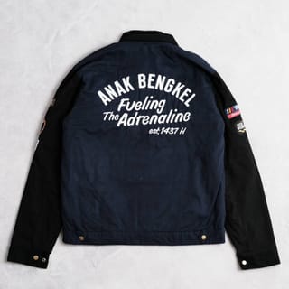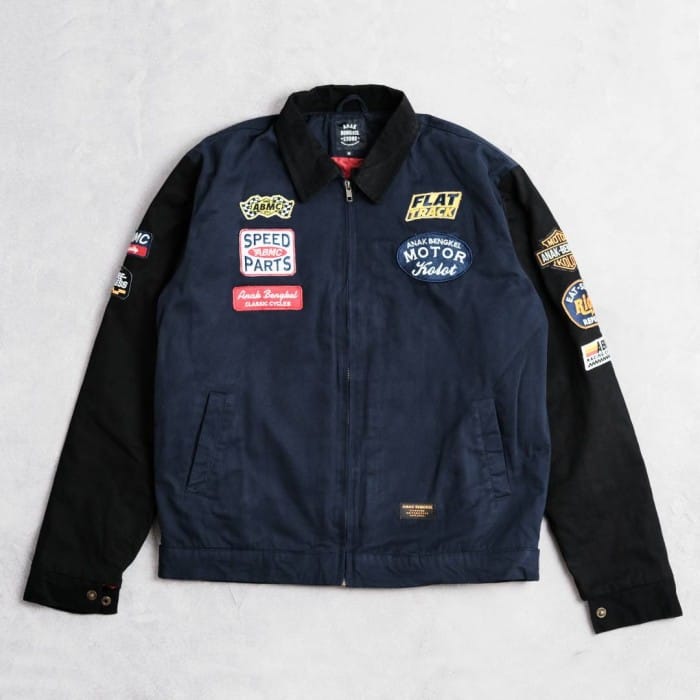 "THE FUEL" jacket Color: Black and Navy Material: Cotton Twill Inner layer: Quilting Standard embroidery left chest 1 and large back 1, Additional embroidery sold separately, Order at the following link: https://tokopedia.link/u24QusmgQHb Size chart: S 56 x 68.5 cm M 58 x 68.5 cm L 60 x 69 cm XL 62 x 72 cm XXL 63 x 73.5 cm Order: WA: +6281322999191 Washing tips: • Wash manually by hand better • If forced to use a washing machine, use normal temperature water no more than 40°C • Do not use bleach • Do not use the dryer, do not dry clean • Drying is not exposed to direct sun. Information: • Original products of Anak Bengkel® • Guarantee of goods according to photos, there may be differences in brightness levels depending on the screen of your gadget monitor. • Size that can be clicked means ready stock, just check out. • Orders before 13.00 are shipped on the same day, closed Sundays • Not receiving payments by Riba/postponement/installments/debt. Conditions: • Items that have been purchased cannot be exchanged or returned, unless there is a new manufacturing defect we replace • Make sure your size before buying, please check the size chart • Video the unboxing moment for claims in case of damage/shortage/loss. Without unboxing video claims are not respondable • Exchange deadline &; claim 1x24 hours after the goods are received #AnakBengkelStore #AnakBengkelOriginals