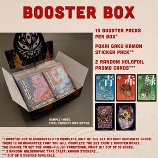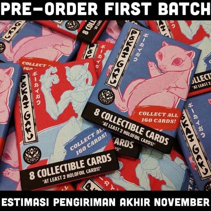 Shipping is estimated around the end/4th week of May 2024. Pre-order 90 days in case of packing delays and others. "What if popular characters become Yokai?" Following the 1st edition run, it is my honor to make the renewed Pokai Gaku cards! From the beginning of this art project, I already dreamt of capturing these creatures as collectible cards. I've made a few changes to further embolden the nostalgia and joy of opening the packs from our childhood memories such as a new card layout, back design, and booster packs. I also made special Gym Leader cards, totaling 160 cards to collect from! The first batch of pre-orders is planned to be delivered by the 4th week of November. Note that the shipping might get delayed by the postal system, so while I'm doing my best to deliver everything as soon as I can, I can't guarantee 100% that it will arrive by Christmas. In one Booster pack, you'll get: 8 random cards and at least 2 random holographic cards, plus a chance to get a hand-pulled traditionally printed card (1 out of 100 packs) card size 63x88mm(same as most TCG cards), printed on 310gsm cardstock I also added 2 more options that are geared toward heavy collectors, the Booster box and the Collector box! In one Booster box, you'll get: 10 Booster packs 2 random Holofoil promo cards If you want to complete everything in one go, then check out the Collector Box: 20 Booster packs (guaranteed to complete the whole set!) All holofoil promo cards 1 hand-drawn traditionally printed card 1 Packaging Gaku acrylic coin/pin Pokai Gaku Kamon type sticker pack (3 random holographic stickers) Bonus prints Disclaimer: These cards are a part of a parody art project, they are not representative of any TCG card. These cards are made for collectible display items only. They can not be used to play in any games or tournaments. *TRUSTED Store because of QUALITY and PACKING *High Quality *Not a cheap product *Double-Checking Product