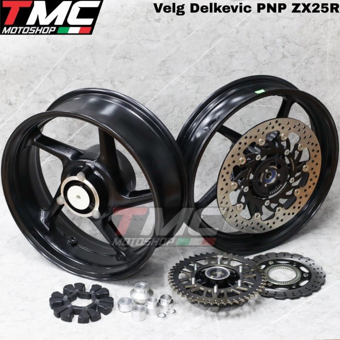 Delkevic PNP ZX25R Alloy Wheels Specifications - 3.5inch single disc front wheels - Delkevic floating 320mm front disc - Dural bushing material 6061 - Abs sensor plate (front) - 5.5inch rear wheels - Ori kawasaki gear nap - Ori Kawasaki rubber gear - Ori Kawasaki ABS rear disc - Rear Gear WR3 520x47 . The price is only the wheels and their equipment, blum including tires. For the tires we are also ready, we can chat admin for those who want to ask questions, thank you . . . #velgzx25r #velgracingzx25r #velglebarzx25r #velglebarkawasakizx25r #velgdelkeviczx25r #velggambotzx25r #tunasmotorcirebon #tmc