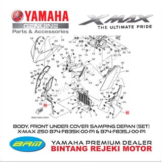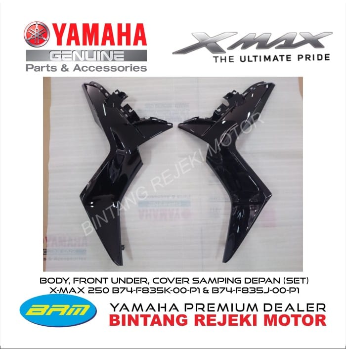 BODY, FRONT UNDER COVER FRONT SIDE (SET) X-MAX 250 Color : Glossy Black Part Code: Right : B74-F835K-00-P1 Left : B74-F835J-00-P1 100% Yamaha Genuine Part! Since the majority of Yamaha accessory products come from overseas, we always set PO on availability. PO goods are not necessarily out of stock. Please contact us to check stock availability before ordering. Thanks. Happy Shopping!!