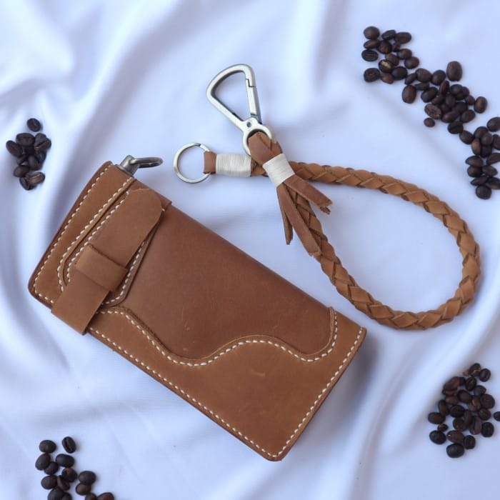 Made of Crazy Horse Genuine Leather with good quality. The unique design of Bikers makes this wallet look cool and sturdy, also equipped with a cool Lanyard strap. The accessories in this wallet package are made of premium antique gold solid material. Material: Genuine Cowhide Type: Crazy Horse Genuine Leather Dimensions: 18 cm x 10 cm (folded) Features: ~ 1 Main Jumbo Slot for banknotes ~ 1 Coin purse slot with Zipper ~ 1 Long slot paper holder ~ 6 Card Slots ~ 1 Long Hidden Slot ~ Handmade Sewing with Wax Thread 1 mm. ~ 1 piece Ring D Stud Premium Antique Gold Solid. ~ 1 piece of Lanyard with Snap Hook and Premium Antique Gold Solid Double Ring. ~ Box #dompetkulit #dompetbiker #dompetbikers included