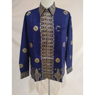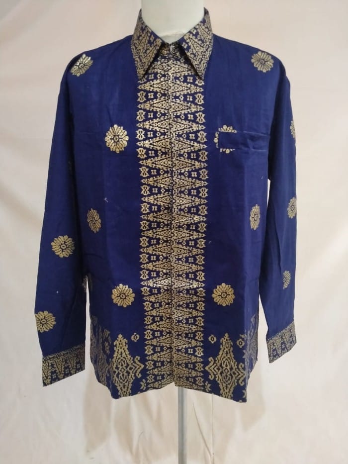 Beautiful Sweet Blue Gold Songket Palembang Batik Shirt ( Can Couple ) - Couple
