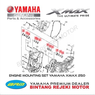 ENGINE MOUNTING SET YAMAHA XMAX 250 Consists of 12 Item Parts: 1. B74-E5372-01 (COLLAR, UNION) 2 Pcs 2. 93210-188H9 (O-RING) 4 Pcs 3. B74-E5378-00 (HOLDER) 2 Pcs 4. 90201-18262 (WASHER, PLATE) 2 Pcs 5. 99009-18400 (CIRCLIP) 2 Pcs 100% Yamaha Genuine Part!! Because the majority of Yamaha's Parts & Accessories products come from the country. So we always set the PO on availability. PO goods are not necessarily out of stock. Please contact us to check stock availability, before ordering THANK YOU... HAPPY SHOPPINGIIING !!!!