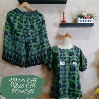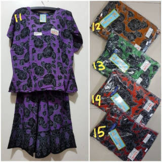 Blue label purple jumbo printed kulot suit CHEST CIRCUMFERENCE 130 CM PANJNG SHIRT 64 CM WAIST CIRCUMFERENCE 100 CM HAS BEEN PULLED THIGH WIDTH 42 CM PANTS LENGTH 65CM POCKET ONE D PANTS Redy stock color according to farian