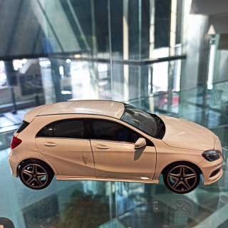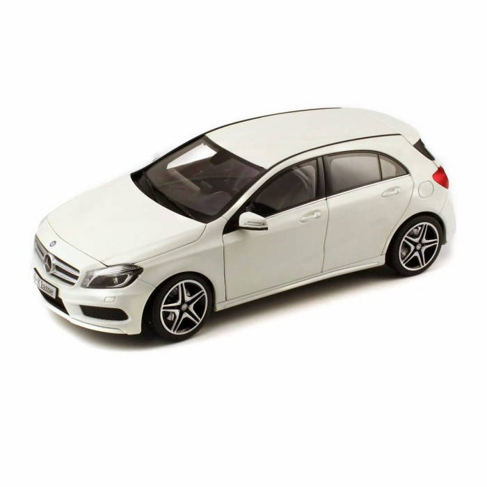 Born as a small monovolume, class A has fully evolved into this third generation, which was presented in 2012. The goal is to compete with the Audi A3 and BMW 1-Series. But unlike these cars, Mercedes comes with a limited bodywork range of only 5 doors. In 2013, the CLA appeared, a 4-door coupe that quickly joined Shooting Break, something truly unprecedented in Audi and BMW's competitive production. Mechanically, the third-generation A-Class marked a renewal point as the base version adopted Renault 1.2TCe and 1.5 dCi engines, something that shocked purists. However, Mercedes engineers managed to pull something acceptable from him, also improving his reliability. After a reorganization in July 2015, the A-Class 3 went out of production in 2018. Mercedes-Benz A-Class (W176) with AMG Sports package. Various genuine paintwork colours. Diecast zinc. Scale 1:18. Accurate reproduction based on original CAD data. Accurate, high-quality printed interior. Hand-assembled from over 100 individual parts. Doors, bonnet and tailgate can be opened. Interior and floor of load compartment flock-lined. ILS headlamps, integral seats type 3, privacy windows, 45.7 cm (18-inch) AMG 5-twin-spoke alloy wheels. Supplied with glove. Length approx. 24.0 cm. By Norev for Mercedes-Benz.