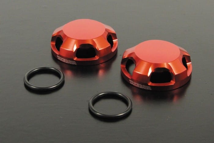Brand : SP Takegawa [Color] Red Anodized [Material] Aluminum [Components] Front shock bolt cap x 2 O-Ring x 2 (00-00-2806) - The color of anodized aluminum products may fade over time. [Product Description] This is a dress-up piece that enhances the custom impression of the bike by sticking to the stock fork bolts. It has a cavity in the shape of the lid to enhance the rugged image of the finely worked aluminum material, while giving a stylish look to the steering area. The anodized surface also enhances the makeup effect. This product can be installed by simply placing it on top of the stock fork bolt, so you can easily enjoy dressing up your bike. Fitment: [HONDA::CBR400R::13- NC47],[HONDA::CB400F (2013-)::NC47],[HONDA::NC700X::],[HONDA::NC700S::],[HONDA::400X::NC47] SKU : 21315037 Part no.: [06-02-1953]