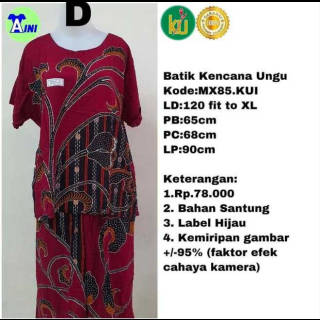 Hello my friend... Ready to Be Your Girlfriend #34; PURPLE JACKET #34; Guaranteed to be original, Durable material, comfortable when used, Very suitable for daily use. Green label, Super quality, culottes, pants suits, Get the collection immediately LD: 120 cm (size XL) PB: 65 cm PC: 68 cm LP: 90 cm BUY WHOLESALE CHEAPER ========= OUR WARRANTY ========= 1. The goods received must be the same as the one photographed Unique daster pattern and we take our own stock photos, contact us if the photo is not clear 2. Goods are definitely ready Please chat with us first for the availability of the daster, because we have a physical store and there is a possibility that the daster has been sold 3. The order process and delivery are fast from our store, but we can't control the courier process 4. All questions we will answer quickly ===== IMPORTANT - PURCHASING PROCESS 1. Chat with us first for availability of goods 2. Please include the daster code in the note, If the daster code does not exist, we will send it random 3. Due to hygienic reasons, all purchases are non-exchangeable, please understand Your satisfaction is our goal, good communication will avoid misunderstandings Thank you