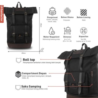Urban factor backpack - Jam Session | Laptop Bag | Backpack Hello Urbaners Welcome to Urban Factor **26L Bag, Laptop Holder Up to 15 inch** * 3 months warranty for every purchase of backpack, (must include photos or videos when reviewed) as a condition for warranty claim * Claim free shipping and other vouchers with every purchase through {market place} programs * Make sure to chat with the admin first to check the stock before making a purchase * All Urban Factor Backpacks are the Best Quality Products made in our own factory * Fast delivery to all regions of Indonesia * Delivery Daily max 17:00, Sunday Holidays Delivery (closed) * Every Backpack / Laptop Bag / Urban Backpack factor goes through strict QC process to get the best product for Consumers Jam Session is one of our best backpack series, made directly from our own factory (urban factor) MATERIAL DETAILS: * Main Material: Finest Polyester * Material in the bag: Satin Fabric * Combination Material: Variation Sponge & Faux Leather * Fine cotton strap (soft on the skin) * Sling : Foam Foam (thickness) 8mm * Buckle using Brand Urban Factor (best quality for Urban Factor) * Urban Factor Brand Zipper Head (best quality for Urban Factor) SIZE DETAILS : * Bag Length : 29 cm * Bag Width : 14 cm * Bag Height : 48 cm DETAILS POCKETS and other Compartments * Main Compartment with laptop slot and other small slots. * 1 Edge Pocket to store coins etc * 1 Storage slot in front of bag USE ADDITIONAL VOUCHERS WHEN CHECKING OUT TO GET THE BEST PRICE OFFER