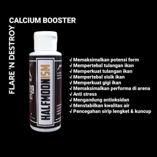 EXPORT GOODS!! This product has been exported to Singapore. HALFMOONISM TONIC - CALCIUM BOOSTER •Vol. 100ml CONTAINS: Calcium 50c/o Tannins Brazilian Polyphenols Flavonoids Multivitamin Methylene Blue Enrofloxacin Magnesium Sulphate/Epsom Salt Hydrogen Peroxide Calcium Permanganate/Calium Permanganate Copper Sulphate Pentahydrate Superiority: The water remains clear, so that it can be used during the Contest Benefit: Maximizing the potential of fish form Thickening fish reinforcement Strengthening fish reinforcement Thickening fish scales Strengthening fish teeth Maximizing performance in the arena Anti-stress Contains antioxidants Stabilizing water quality Prevention of sticky fins and buds SHAKE WELL BEFORE USE _____ Dose: Treatment: 1 drop/L water (Siphon once every 2-3 days) _____ Contest Time: 2-3 drops for 4L jars Water setting 3L - 3.5L water _____ *Note: add salt to taste or 1 tablespoon of jelly. _____ How to set it up: First: prepare new clear water or sedimentary water (old water) on a solitary size of 15x15x20 and add enough fish salt or 1 spoonful of jelly. Second: Give only 4 drops ____ How to Siphon / Change water: Siphon all food waste, dirt and water up to 80c/o Then give new water/sediment again as high as the initial setting and give the fish salt again just enough Then give HALFMOONISM 4 more drops ____ Total drain: Drain 100c/o when it has been 3x siphon. Clean the Jar/Solitaire thoroughly without soap ____ *Info: 1kg = 7 bottles Orders arriving by 5:00 p.m. will be shipped the same day. Orders above 17:00 will be shipped the next day. #Khusus via SiCepat the order is sent the next day. Active online: EVERY DAY The simultaneous delivery schedule is carried out in the afternoon-evening. (from 17:00-19:00) *100% original product from Suicidal Halfmoon Official Happy shopping! THX FOR SUPPORT LOCAL PRODUCT.