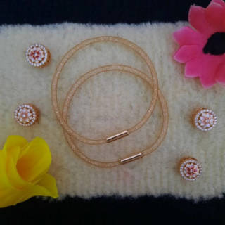 Pandora Gliter Swarovski Wire Rope Bracelet Magnet Lock Letter Pendant - rose gold