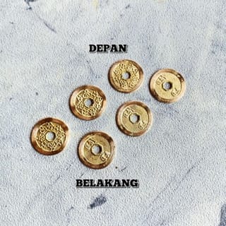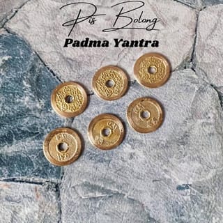 Pis Bolong or uang kepeng which has always existed and is closely related in Bali, all forms of ceremonies in Bali have never been separated from the facilities of Pis Bolong Pis Bolong Padma Yantra, with the carving of Padma Mandala on the front side and the Padma script on the back side displays the impression of Balinese beauty and culture. Material : Spare (five types of metals) Gold, Bronze, Iron, Steel, Precious Gems. Specification : Diameter 3 cm Thickness 2 mm The Motive of the Pisces Goes Back and Forth Price : 5 K/Piece/pcs Notes : Please inquire about stock availability, as our products are handmade Please add bubble wrap for products that are easily broken, without additional bubble wrap if there is damage during delivery it is not our responsibility PS: Additional bubble wrap is only Rp. 1,000 for extra security #craftdewata #tridatu #sangadatu #gelangtridatu #liontin #pancadatu #pisbolong #pispancadatu #jinah #omkara #teratai #aksesorismobil #aksesorismurah #aksesorisbali #oleholehdaribali #oleholehmurah