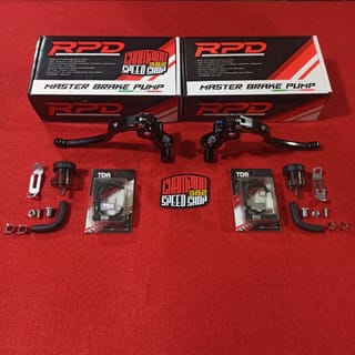 Master Brake Set RPD Racing Performance Development Original Universal NMAX Old 2015-2019 ADV 150 PCX 150 XMAX 250 Old Forza All New NMAX 2020-2023 PCX 160 ADV 160 New XMAX 250 Connected 2023 etc. Information: - 100% RPD Racing Performance Development Original - Right radial brake master with 17mm piston diameter - Left radial brake master with piston diameter of 16mm - Improve braking performance more optimally - Brake feeling is more lively and softer - Color Black - Tube bracket and brake fluid tube included - Price for 2pcs master right left brake - Color : Black * Please inquire in advance about the stock of the goods before ordering