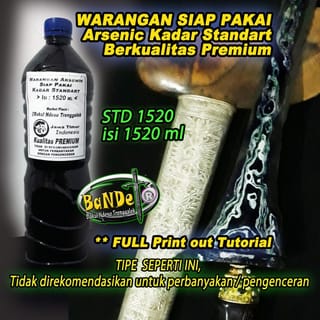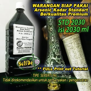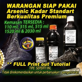 - AVAILABLE 5 PACKS 110, 315, 515, 1520 AND 2030 ML ( FULL BOTTLE CAP ). This type contains Standard Arsenic content. THIS TYPE IS A READY-MADE TYPE, NOT RECOMMENDED FOR VOLUME PROPAGATION BY THE METHOD OF DILUTION / ADDITION OF LIME JUICE. IF YOU WANT THE TYPE OF CONCENTRATED ARSENIC CONTENT that can be propagated by the method of adding lemon juice, can be seen in our other product items at: https://www.tokopedia.com/bakulndesogalek/warangan-pekat-arsenic-jerman-100ml-bisa-di-encerkan-sampai-300-ml-615 - To facilitate and maximize the process or results of waring, it is recommended to use at least 315 ml, so that it is easier to dip or soak the blades when waring. The results of waring in general will be very maximal if the entire surface of the blade can be dipped or submerged in the warangan liquid, so that the pores of the blade are perfectly affected. - About the use including the process2 of cleaning the blades2 tosan aji until the waring stage, we always include a PRINT OUT guide that might be used as an additional reference for exchanging experiences, as well as very open discussion via Chatt or via telepun &; WA which we include in the tutorial sheet. - Shipping packaging is GUARANTEED NEAT, SAFE and FREE OF CHARGE PACKING, using thick bottles wrapped in plastic layers, Full BUBLE WRAP and PROTECTED THICK CARDBOARD BOXES.