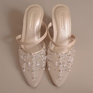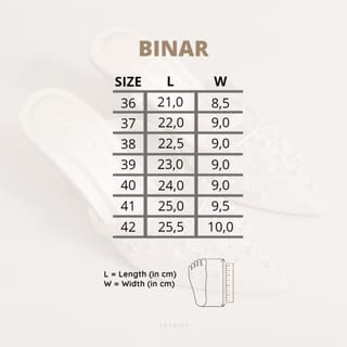 BINAR (Keshilau Vol 1) Mules with Pearls Embellishment 7cm Block Heels As the name implies, #34; BINARY #34; meaning luminous and shining, with broken white color paired with elegant light gold makes Binar so captivating to anyone who sees it. Very luxurious and beautiful design can be for all occasions, for parties, weddings, to casual events Please pay attention before purchasing: 1. Order by PO 7-14 days, can't be too tight because all shoes are handmade 2. It cannot be custom models and colors other than those on the product display. 3. For this model, the pointy model is highly recommended to measure the length of the legs according to the size chart. The Size Chart is in the last image of each product. 4. Can be custom heels (Flat, 2 cm, 3cm, 5cm) please fill in the details at checkout. Custom heels cannot be exchanged or refunded. 5. Custom size 35 or 43 cannot be exchanged or refunded Size Redemption Conditions: 1. Warranty size max 3 days after the item is received, more than 3 days of exchange cannot be processed. 2. Custom (heels/size) cannot be exchanged. 3. Exchange of goods in new condition not used for use, return delivery of shoes must be wrapped and wrapped as before, if the condition of the shoes is damaged we have the right to refuse the request for a return size. 4. Shipping is borne by the buyer. 5. Size change can only be 1 time, can't change heels/models/colors.