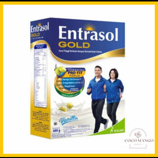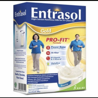 Entrasol Gold Vanilla 600g is a nutrient high in calcium with olive extract equipped with Pro-Fit Formula (Omega 3 & 6, High Calcium & Vitamin D, High Fiber, 10 Vitamins & 5 Minerals) and lower sugar to help meet daily nutrients to stay active and fit and slow down the occurrence of osteoporosis. Composition: Maltodeskstrin, Milk Powder (25%), Inulin, Whey Protein Isolate, Whey Protein Concentrate, Olive Fruit Extract (0.07%), Thickener, Sucrose Artificial Sweetener, Vitamin & Mineral Premixes Superiority: - Olive Extract - Omega 3 & 6 - High in Calcium & Vitamin D - High Fiber - Lower sugar BPOM No.: 805010331281 Happy Shopping^^