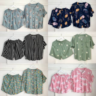 One Set Rayon Premium Nightgown Short sleeve shorts - motif 4
