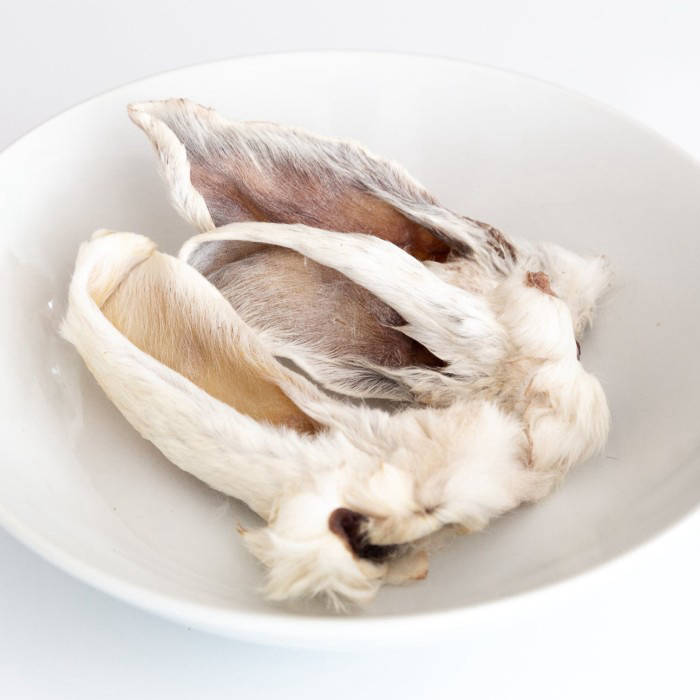 Our Rabbit Ear with Fur is a great all-natural chew for dogs with sensitive digestions. If you think your dog might be put off by a furry chew then you may be in for a surprise! It's slowly dehydrated to produce a treat which will keep the dog happy and busy for a while. A deliciously natural dog chew without any added artificial flavors or preservatives. Perfect also for small pups, those who are fond of chewing on things. Dogs seem to love their fuzzy texture & the fur brings a number of special benefits. The fur does provide dietary fibre and cleans up the dogs stomach on natural way. Our Rabbit Ears help to improve the dogs dental hygiene, because the natural chewing motion does wonders by helping to eliminate harmful plaque and tartar buildup. Chewing on our all-natural dog chews is also a stress reliever. Great to calm a dog down Made from 100% Rabbit Ears. No Preservatives or any additives. One (1) Pack includes 2 pcs of Rabbit Ear with Fur. Note that this is a pure natural product, so the size, form and color can differ from the photograph. Packed in vacuum bag plastic making it a perfect solution, also comes with natural Silica Gel inside the plastic to help absorb moisture. Storage and Handling: Avoid storing treats near a heat source or direct sunlight Keep treats dry and away from any form of liquid Best consumed within 30 days upon opening You may refrigerate our chew for longer shelf-life Always supervise your furry friend while they are crunching and munching, and be sure to have a bowl of fresh water available at all times