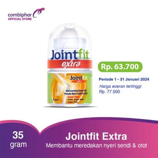 Jointfit contains N-Acetyl-D-Glucosamine which is useful for reducing joint pain. Enriched with Vitamin E Acetate which can be used to maintain health and contains Menthol which is used to help reduce joint and muscle pain. Composition: Each gram of gel contains: - n-Acetyl-D-Glucosamine 1 mg - Vitamin E (Acetate) 1 mg - Nonivamide 0.75 mg - Menthol 27.5 mg - Camphor 40 mg Uses: Helps relieve joint and muscle pain Instructions for Use: Apply on the skin on the painful area, 2-4 times a day Fill: 35 grams Special Attention: - Keep out of reach of children and direct sunlight. - Avoid eye area, lips and open wounds. If it comes into contact with eyes, rinse immediately with water and if it still hurts please contact a doctor. - Not used for children under 2 years old. - Do not use under the nostrils. - For external use only. Store below 30 C Distribution License No: POM QD.101 709 331 *Important! It is highly recommended that the buyer can record a video at the opening of the package. Without video evidence, it will be very difficult for us to process your complaint.