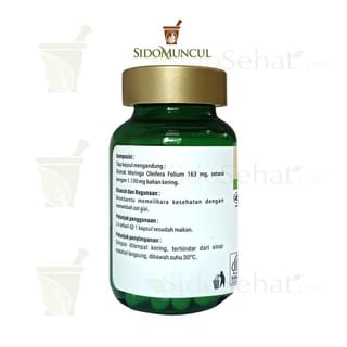 Moringa Leaves or commonly referred to as Moringa Oleifera is a plant from the Moringaceae tribe. The content of vitamin C, vitamin A and potassium in moringa leaves is very high, so it is very good if consumed regularly to maintain a healthy body Disclaimer : The results obtained by each individual will be different. This information is for reference only. Composition : Each capsule contains 300mg of Moringa Oleifera Folium Extract Benefits: Good for maintaining health Registered with POM TR. 132 371 791 Drinking Rules: Take 2x a day @ 1 capsule after meals Not recommended for pregnant and lactating women. Packaging : Plastic bottle containing 50 capsules