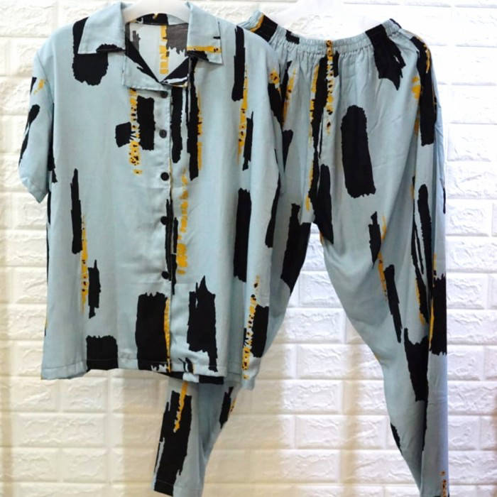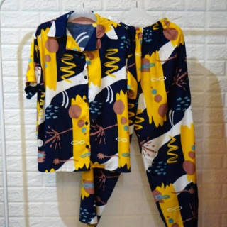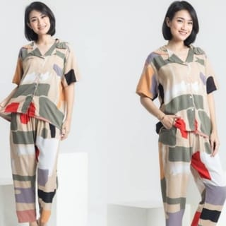 The goods we sell are real pict yes, we take pictures of the goods directly. so that your brother accepted according to the photo yaa.. Goods produced by yourself / first hand •Quality product at a lower price (can be compared with other products with the same material) 🎀 Pajamas Fashion - 1 set of short-sleeved tops + trousers - Cutting OK - Full rubber pants - Pants have pockets - Premium cotton rayon that is super duper cool, smooth, soft, dingiiin, and doesn't make gatel.. guaranteed material doesn't let go, brother The character of premium rayon material is thin, falling and soft yaa.. but the material is strong, sis.. the material that we use rayon for premium rayon clothes and imported rayon yes 🤩 🎀 Size chart All size fit to XL -Shirts Chest circumference: 120 cm Front shirt length: 65 cm -Pants Thigh circumference: 70 cm Waist circumference : up to 110 cm Trouser length: 95 cm Fashion pajamas These pajamas can be used for bobo, you can use them for walking, work combined with ama skirts or kulots still classy n simple..