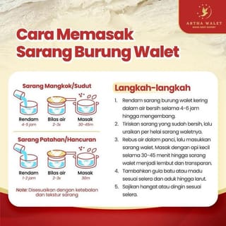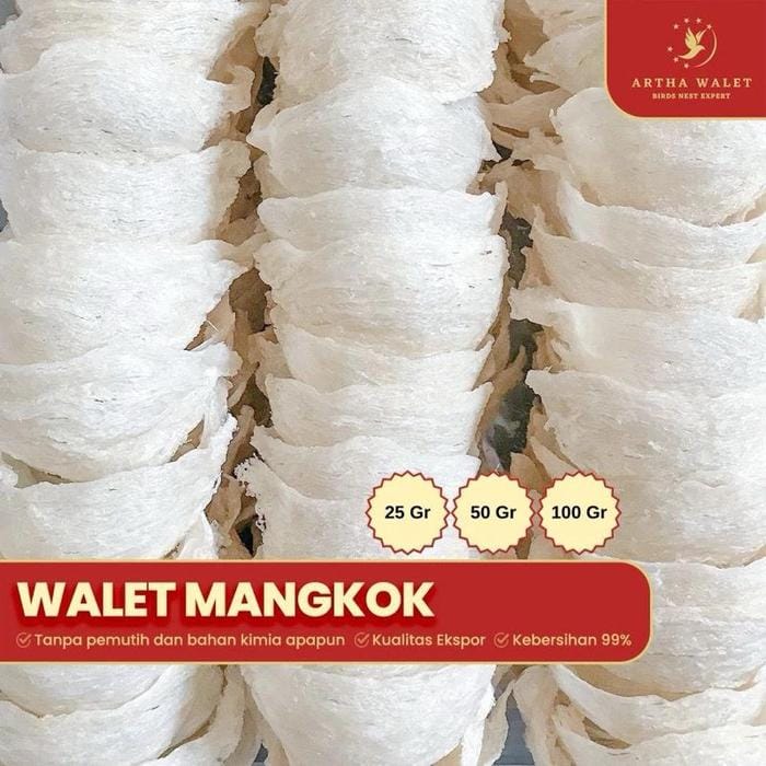 Swallow's Nest Bowl / 燕窝 Product Specifications: - Type : Swallow's nest bowl - Size : 3 fingers - Shape: natural with legs cut to the size of the swallow's nest - Purchases of 3kg and above have a special price Advantages of our products: - Products are guaranteed to be clean, ready to be cooked and consumed - Washing is carried out by experts using mineral water without any mixture of bleaching/cleaning chemicals. 100% NATURAL ONLY. WARRANTY 100%️ - It is a Kalimantan swallow with 99% cleanliness (very clean) export quality. - The product is weighed in a 100% dry state (no grammatical fraud). A balance is guaranteed. - The product will be sprayed with mineral water before shipping to avoid the goods being destroyed at the time of delivery. - Our products are neatly and safely. Suitable for all ages (from 1 year and above) The benefits of consuming Swallow's nest: - Good for pregnant and breastfeeding children - Improves skin health (beauty) - Increase immunity - Maintain brain health - Increase intelligence - Lowers the risk of cancer - Prevents insulin resistance - Maintain healthy bones - Maintain heart health - Maintain lung health Thank you.