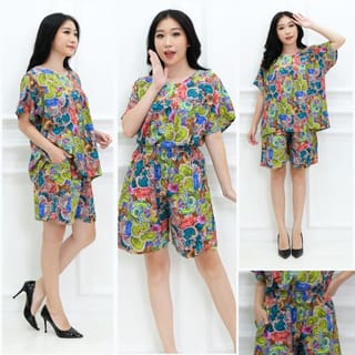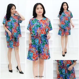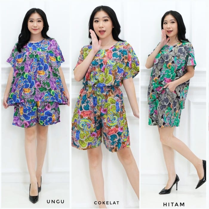Baby doll women's batik nightdress - Cool material and suitable for daily use - 1 set of baby doll short sleeves and shorts - LD shirt 122cm, length 65cm, hand length from neck 30cm - LP pants 52-108cm (rubber), length 45cm - brown, blue, red, purple, black color Please read in advance for reserved sizes and colors as products that have been ordered cannot be exchanged and returned.