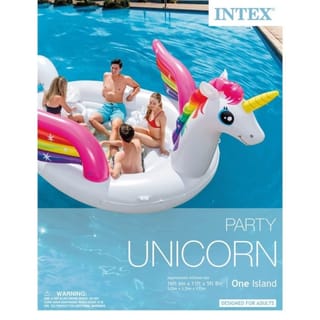 Let's face it, you're far from basic. Heck, some might say you're so special and rare that you're like a unicorn. Relax on a pool float that's as unique as you are with Intex Inflatable Unicorn Party Island Pool Float. This roomy float is large, in charge, and possess enough room for you and the squad to spend a day on the pool and lake. It has a built-in cooler and 4 cup holders, so you and the gang can stay properly hydrated. This float isn't just show, it's also safe. From the detachable boarding platform to the 7 heavy-duty handles, it's never been easier to enter and exit a float of this size. Stand out the next time you're on the water with this unicorn float from Intex. Highlights - Large inflatable unicorn pool float designed for relaxing and having fun in the sun - Large enough for roughly 4 people - Made of durable 20-gallon vinyl - Features a built-in cooler to store drinks on a warm day - Detachable boarding platform makes it easy to enter and exit the float