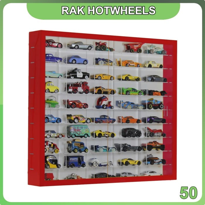RAK / RACK HOTWHEELS Products are always available...!!! Product Specifications: Clear 2 mm Acrylic Rack Box Backdrop (Rear) 2 mm Milky White Frame Circumference 3 mm Color Please select a color on the variant menu This Link product is only available Standard Colors: Red, Hat, White, Navy (Dark Blue), etc. There is a hole for hanging on the wall Number of Columns and Rows : 5 Columns x 10 Rows = 50 units Ukurak Perkotak: Length 9 cm, Width 4 cm, and Height 4 cm Overall Rack Size : Length 46 x Thickness 6.5 x Height 41 cm Sleeding Door Similar to Storefront, No need to lift2 doors just slide alternately right and left VERSION Ready-to-Use Assemble Other Sizes Available Wa at Number 081806716229 For Discussion Please Order Please click the following links for other models: Sleeding Storefront Lock https://www.tokopedia.com/duniaaksesoris/kunci-etalase Standard Edition ================= contents 50 Landscape https://www.tokopedia.com/duniaaksesoris/rak-rack-hotwheels-1-64-isi-50-lanscape-model-pintu-sleeding contents 50 Square https://www.tokopedia.com/duniaaksesoris/rak-rack-hotwheels-1-64-isi-50-square-model-pintu-sleeding Contents 64 https://www.tokopedia.com/duniaaksesoris/rak-hotwheel-akrilik-isi-64-pintu-sleeding-etalase-skala-1-64 Contents 100 https://www.tokopedia.com/duniaaksesoris/rak-hotwheel-akrilik-isi-100-pintu-sleeding-etalase-skala-1-64 Contents 150 https://www.tokopedia.com/duniaaksesoris/rak-hotwheel-akrilik-isi-150-pintu-sleeding-etalase-skala-1-64 contents 200 Landscape https://www.tokopedia.com/duniaaksesoris/rak-hotwheel-akrilik-isi-200-pintu-sleeding-etalase-skala-1-64 contents 200 Square https://www.tokopedia.com/duniaaksesoris/rak-hotwheel-akrilik-isi-200-square-pintu-sleeding-etalase-skala-1-64