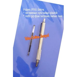 * The price is for 1 pen. * For refills sold separately, the refill link is at the bottom of the description of this product, yes ... Brands : Zebra Body : Stainless - body color silver The handle part is not slippery Size : 0.7 mm The Refill code for this type of pen is type F-Refill (Inside the SDH pen there is 1 ink. Additional refill sold separately) * To search for the refill in the storefront, you can type / search with the keyword F701 Ink Color : Black ** No box LINK to REFILL: * Black ink refill: https://tokopedia.com/tokoonlinejempol/atk0658zb-type-f-refill-hitam-0-7-isi-ulang-327317-untuk-pen-f301-f701 * Refill Blue color ink : https://www.tokopedia.com/tokoonlinejempol/atk0684zb-type-f-refill-biru-0-7-isi-ulang-327324-untuk-pen-f301-f701 Additional Notes : * Body material for the contents of the factory, made of plastic. (The material of the body contents of the ny will always follow the default from the factory, yes kak ..) (ORIGINAL OFFICIAL Item from ZEBRA) * Body refill material sold separately, made of iron. (The plastic wrapping refill, sealed from the factory) (ORIGINAL OFFICIAL Item from ZEBRA) Thanks