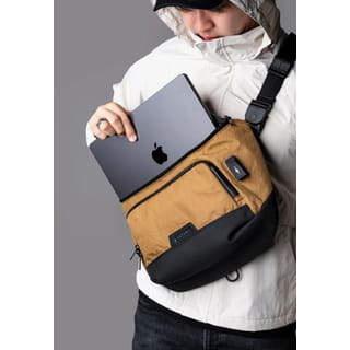 UPDATE: No more Alpaka logo on the key clip included in this bag. The brand tag will no longer say "LIMITED EDITION" and will instead feature Alpaka's tagline: "KEEP MOVING FORWARD." ---- Make the most of every day with Bravo Sling Max, a messenger-style sling bag that you can take anywhere. It comes equipped with an adjustable shoulder strap for maximum comfort and minimal stress - no matter what life throws at you. Features & Benefits New: X-Pac VX21 Coyote Brown with interior 300D Cool Grey Honeycomb Ripstop Polyester - Limited Edition Dark Green X-Pac VX21 - Limited Edition Black X-PacVX21 - Limited Edition Black X-Pac VX42 - Limited Edition Multicam Black X-Pac X50 - Limited Edition Slate Grey X-Pac VX21 100% carbon neutral Hi-vis Orange 210D Ripstop Nylon lining Fits a 14" MacBook Pro Internal laptop sleeve fits a 14" MacBook (36cm L x 25cm) RFID blocking front compartment Anti-theft, lockable zippers Magnetic buckle in the strap for efficiency External USB charging port USB-A cable included USB-C cable available at a later date (currently being redesigned) Hidden SIM/MicroSD cardholder & SIM tray eject pin Comfortable, removable & easy to adjust well-padded Soft Nylon Strap Can be worn on either shoulder Space foam padding Weatherproof fabrics Waterproof zippers Modular design - compatible with modular accessories by ALPAKA HUB Magnetic Keychain included as a key tether Four main compartments. 10L capacity Well padded carry handle for transitioning into 'briefcase mode'. Perfect for meetings. Hidden extra back pocket for smaller items/valuables. RFID blocking pocket in front compartment Front compartment is the tech space for storing smaller items Internal laptop sleeve fits a 14" MacBook Pro Internal sleeve is 36cm L x 25cm Dimensions: Length: 39 cm (15.35") Height: 26 cm (10.23") Depth: 14 cm (5.51") Volume: 10 L Weight: 650 g