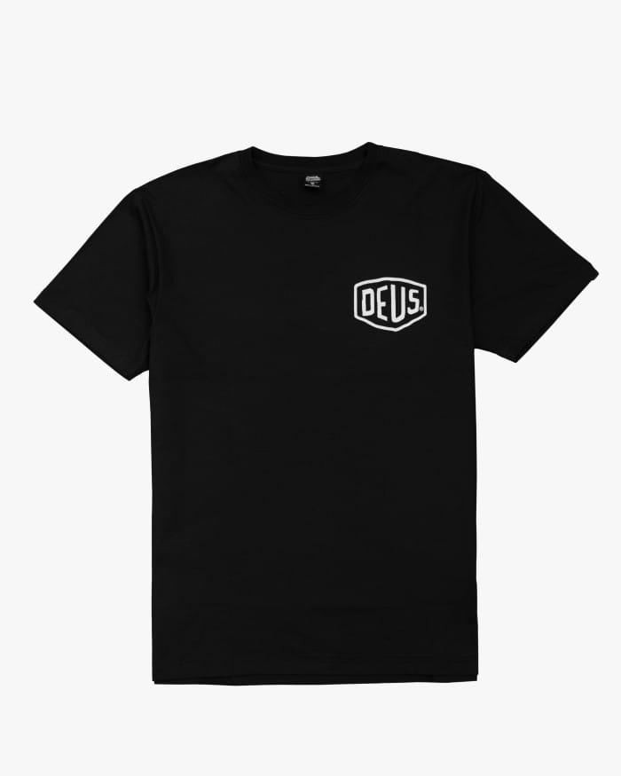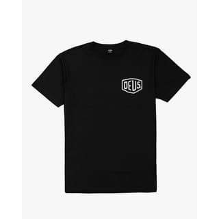 T-shirts are part of the Deus Ex Machina Classic Collection. This regular men's fit navy shirt features a replica of the original Deus print and Deus address print on the back, a soft cotton 190gm jersey. ----------------------- Address Bandung is a part of the Deus Ex Machina Classics Collection.This men's regular fit navy tee features an original Deus front and back panel print on soft 190gm Cotton Jersey. Size (cms) (S - M - L - XL - XXL) Chest Width (49 x 51.5 x 54.5 x 58.5 x 63) Body Length (71.5 x 73 x 74.5 x 77 x 79.5) X Shoulder Width (45.3 x 46.5 x 47.7 x 48.9 x 50.7) Arm Length (19.5 x 20 x 20.5 x 21 x 21.75) Wash Care: Gentle machine wash (30 degrees) with similar colours. Wash inside out, do not tumble dry. Iron print on reverse.