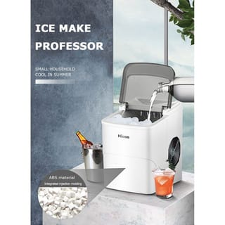 Hicon Portable Ice Maker - Make Ice in Minutes Description: -Brand: Hicon -Within 24 hours can create about 15 kilograms of ice. -With a full ice sensor -2L water tank -Can make 9 ice cubes in 6-9 minutes -Ice bucket capacity 0.6 Gillo Rum -There is a system to prevent water from running out. -There is a full ice alert. -Using steel, copper and aluminum materials -More heat dissipation area, better heat removal. -Ice making speed is faster -Work with quiet sounds -Compressor operating Low noise, only 40db, no noise -Long shaped glass Seeing the ice making process makes you clearly visible. -ABS material, creating work delicate, strong and modern -Heat vent Protect the device and accelerate the heat dissipation Maintain service life -Side vent Add beauty and good heat dissipation -While the water pump -Electric Current: 0.043 (A) -Voltage: 0.043 (W) -While the compiler is working -Electric current: 3.172 (A) -Voltage: 392.3 (W) -Normal ice -Electric current: 0.733 (A) -Voltage: 91.16 (W) -Water solubility -Electric current: 0.798 (A) -Voltage: 114.2 (W) -Product Name: HZB-16A -Voltage / Frequency: 220-240V / 50Hz -Ice cube size: 26 * 32mm -Create ice at once: 9 cubes -24 hours can produce: 15 kg -Water filling: Manual filling -Ice shape: Round like a bullet -Power: 105W -Production time: 6-13 minutes -Ice capacity: 0.6 kg / 60 tablets -Watering capacity 7KG -Body size: 222*313*320mm.