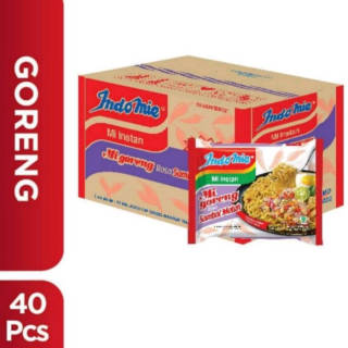 Indomie noodles are fried with sambal matah. 1 box contains 40 pcs. Delicious, quick to serve. Nb : expired is still safe, calm down!!