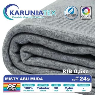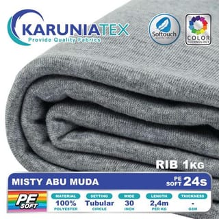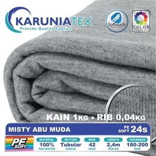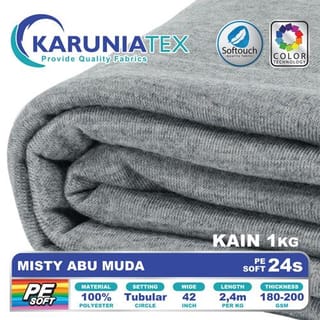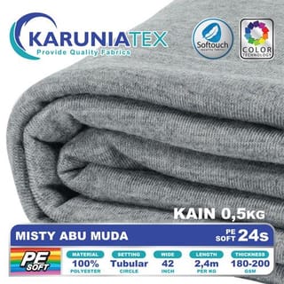 PE Soft T-Shirt Fabric 24s Kiloan | Misty Abu Muda | Karunia Textile - Fabric + Rib