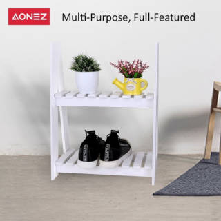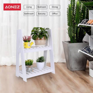 AONEZ Mini Flower Plant Rack for Flower Pot 2 level Flower Rack - White