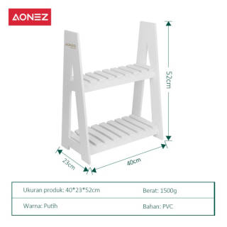"A 2-level flower rack that has an attractive design, there are two levels so you can arrange the plants you like neatly. Made with high quality PVC material so that it is safe and durable to use. Multipurpose flower shelves that can also be used as bookshelves, stretching accessories and others. Feature: Made with quality PVC material is safe and safe to use Simple and modelistic design, which makes it suitable for a variety of styles of your home A two-tiered design that makes it easier for you to put the items you want. The lightweight portable design makes it easy to move and place where you want. Details: Material:PVC Installation method: Strengthened with screws Product Size:52*23*40cm Packaging size:54*24*3.5cm Product Weight:1kg Weight including packaging:1.5kg Usage:Home Packaging List:Product Accessories +Guide Pictures Maximum item weight:2KG "