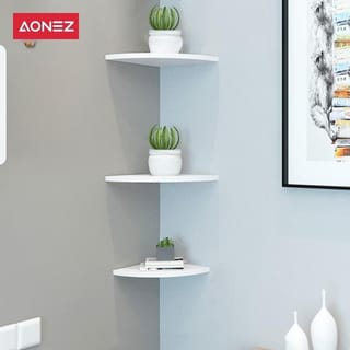 AONEZ Triangle Fan Shaped Wall Elbow Rack Corner Wall Rack - White