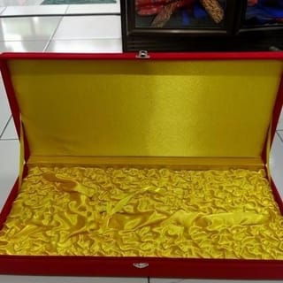 Storage Box/Keris Protective Box Plywood Material, Puring Fabric and Velvet Fabric Rectangular Model To protect / store the keris Color options red, blue, green, black Work on Super Fine Length -+ 60 cm Width -+ 30 cm Weight 2 kg