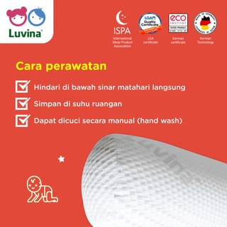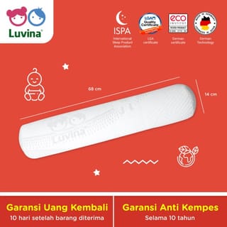 LUVINA LATEX BOLSTER for ages over 4 years Ergonomically designed and designed according to the size of your little one's feet. Made of natural latex material and cotton lining that is safe for children and can prevent the growth of mites, fungi and bacteria. In addition to providing comfort, Luvina Latex Children's Bolster also provides healthy sleep for your little one. Size: 72xD15 Made of 100% Natural Latex. - Anti-allergic. - Hygienic amp; anti-bacterial. - Comfortable when hugged by the Sarong Link: https://www.tokopedia.com/luvinasehat/luvina-sarung-guling-anak-4-tahun-ke-atas-kid-bolster-case For further questions and information, please contact us: PT. Luvina Indonesia Sehat Phone : 021-612 5668 WA : 0812 8785 6633