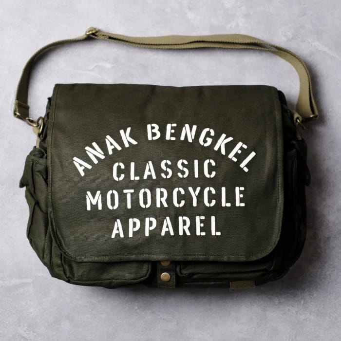 The Army Messenger Bag Workshop is equipped with a strap to become a motorcycle sidebag. Dimensions: Length 38 cm Width 12 cm Height 30 cm Laptop case length 37 cm (Laptop 14 inch) Strap width 3.5 cm Description: • Original product Workshop Child • Guarantee of goods according to photos • Daily delivery schedule. • Sunday closed. • Do not accept payments with Riba/Debt/Credit. Conditions: • Goods cannot be exchanged or returned, unless there is a production defect we replace it with a new one • Deadline for exchange is 1x24 hours after the item is received • Please check the size of the product before purchasing • Video of unboxing to claim in case of damage/deficiency/loss. Without an unboxing video, claims cannot be responded to. #AnakBengkelStore