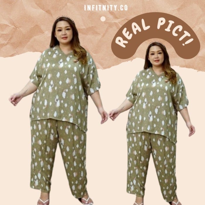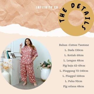 HELLO,WERE INFITNITY. HERE IS OUR SLEEPY SET. MATERIAL; Cotton Twotone L. Chest 130cm L. Armpit 60cm L. Arm 48cm Pjg shirt 62-69cm TROUSERS L. Waist 72-140cm L. Hip 160cm L. Thigh 92cm Pjg pants 48cm COLOR OPTIONS SAGE GREEN DUSTY PINK BRONZE NAVY DIRECTLY CONTACT US FOR SIZE CONSULTATION OR ANYTHING🦋 —See you through the courier's brother, huh? See u, infitnity.