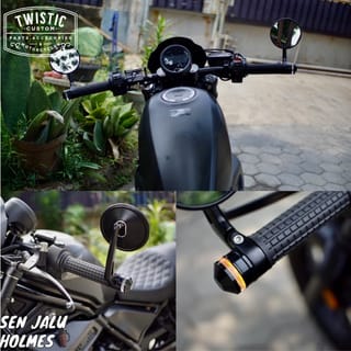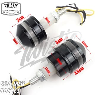 Male Male LED Turn Signal Lights Holmes ALUMINUM material is heat resistant, durable and WATERPROOF, do not be confused with PLASTIC material which melts quickly due to heat and does not last. There are 2 variants: 1. Male penny with male mirror mount 2. Plain male penny without male mirror mount Choose a rearview mirror mount variant if you want to use a male rearview mirror Imported goods, GUARANTEED QUALITY is different from local goods. Price for a pair (2 pcs) Suitable for custom, classic, japstyle, scrambler, caferacer motorcycles on Kawasaki, Honda, Yamaha, Harley, Triumph, Benelli, and all kinds of custom motorcycles. Specifications - Material: Aluminum(6061-T6) Body + High transmittance lens + Waterproof LED - Body Color: Black - Lens Color: Clear - Voltage: DC 12V - Waterproof Rate: IP 67 - Luminous Flow: 300LM - Life span: 33000 hours - Cable Length: +- 30CM (11.8") - Cables: 3 (Mass, Yellow Cent and White Twilight) - For handlebars with a diameter of 22mm Fittings in the Box: 1. 2 pcs Male Penny Lamp FOR ELECTRONIC ITEMS SUCH AS HEADLAMPS, PENNY STOPLAMPS, FOGLAMPS, DAYMAKERS ETC IT IS REQUIRED TO RECORD TEST VIDEOS WITHOUT PAUSE USING 12V BATTERY We do not accept any complaints about items that have been installed / connected to the motor body cable or the condition has been installed on the motorcycle and Order / Transaction status completed. We have checked the goods before they are sent, if they are still returned, we will appeal by attaching proof of checking the goods on CCTV.