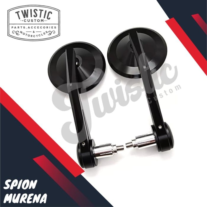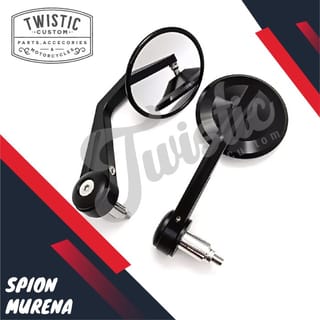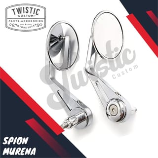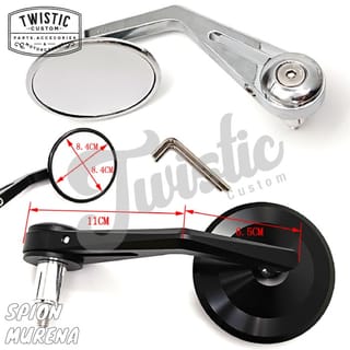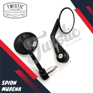 Murena Male Mirror Import High Quality Material Price above for a pair (right-left) Specifications: - Material: CNC Aluminum + Glass - Color: Black/Silver - Surface finishing: Hard Anodizing - Glass Model: Standard Convex - Size: is in the 5th photo It can be installed on the handlebar with a handlebar diameter size of 22mm. Suitable for all types of custom motorcycles with the concept of Caferacer, Scrambler, Tracker, Bobber and Cruiser.