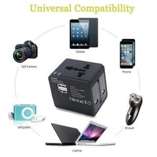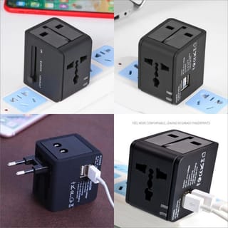 Do you like to travel? Don't want to be complicated with carrying a lot of plugs? Want a good and safe adapter? This plug can be used in more than 150 countries, namely: US Type: - Canada - India - Japan - Mexico - Thailand - United States - Philippines etc EU Type: -Indonesia - Germany - France - Spain - Italy - Singapore etc Type AU: - Australia - New Zealand - Argentina - China etc UK Type: - Malaysia - United Kingdom - Singapore - Hong Kong - Bangladesh etc Features : Flame retardant Material This adapter is made with modern quality with high pressure resistance, impact resistance, environmental friendliness and fire protection. International Charger Adapter The electrical plug of this adapter has 4 types of plugs, namely EU, UK, US and AU. With this adapter plug, you can travel to other countries without worrying about the type of plug from that country. Intelligent Fast Charge It has a 5V 2.1A output that can charge USB devices faster such as, smartphones, tablets, speakers, power banks, and other gadgets. Protection Equipment Safety It has Safety Fuse technology as a safety fuse is effective to prevent overheating, overvoltage and static electricity. Multitasking Port There are 2 USB ports that can be plugged in with a device cable, which can be used for 3 devices at the same time. Item Specifications: Color : Black Size : 60 x 45 x 55 mm (D x W x H) Material: PC+copper Input: AC 100V-240V ( 660W max at 110V, 1380W max at 230V ) Current and voltage: Max 6A 250Vac USB output: Max 5V 2.1A 5Vdc Items obtained: 1x Universal Adapter 2.1A 1x Zipper bag 1x Guidebook Note: The blue indicator will illuminate when there is a power supply and is ready to use.