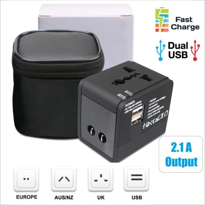 Universal Travel Adapter 2.1A Fast charging Dual USB adapter plug