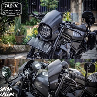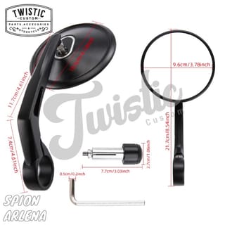 Arlena Male Mirror Imported High Quality Material Price above for a pair (right-left) Specifications: - Material: CNC Aluminum + Glass - Color: Black Powder Coating - Glass Model: Convex - Size: is in the 5th photo Can be mounted on the strap. Suitable for all types of custom motorcycles with the concept of Caferacer, Scrambler, Tracker, Bobber and Cruiser.