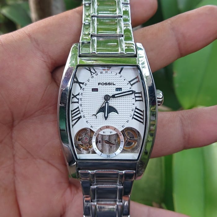Original Fossil Twist Tank Watch Preloved normal and well-maintained condition Fair wear blisters, bright lume Chrono and moonphase are all active Load chain length up to bb 80kg+ Completeness of original box &; book