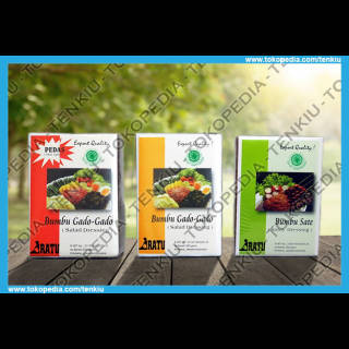 200 grams. The authentic peanut sauce for vegetable salad dressing. 100% Halal. Made from the best beans and selected ingredients. Original recipe since 1970. Just add water to the marinade and mix thoroughly. The process is less than 3 minutes! Suitable for modern personalities in a practical era. This peanut seasoning is dry, so it can be easily carried for traveling. It is suitable for Indonesians abroad who miss Indonesian food or as a typical Indonesian souvenir for acquaintances / relations from abroad. 100% vegetarian &vegan friendly. Net weight: 200 grams. 3 variants available: >> The Original Gado-Gado Seasoning is not spicy (yellow) https://tokopedia.com/tenkiu/bumbu-gado-gado-original-cap-ratu-est-1970-bumbu-kacang-200-gram >> Spicy Hodgepodge Seasoning (red) https://tokopedia.com/tenkiu/bumbu-gado-gado-pedas-cap-ratu-est-1970-bumbu-kacang-200-gram >> Bumbu Satay (green) https://tokopedia.com/tenkiu/bumbu-sate-cap-ratu-est-1970-bumbu-kacang-200-gram