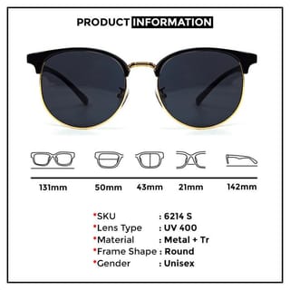 Berrybarton glasses are the perfect glasses to help you see life brighter with a style that makes you feel more confident. Type : Berrybarton 6214 Material : Metal + PC Frame Shape: Round / Round Size: Total Width : 131 mm Lens Width : 50 mm Lens Height : 43 mm Nose Pad : 21 mm Arm Length : 142 mm Color Options: •Black • Black Gold • Gold Grey • Silver Grey • Gold Brown Equipment obtained : • 1 Set of Glasses (Frame+Lens) • Hardcase (Glasses Storage) • Cloth (cloth for lens cleaner) • Packaging is equipped with a Box/Box also coated with Fragile so that it is safe during delivery.