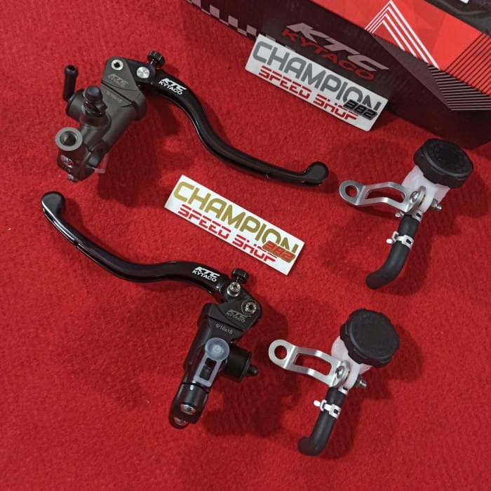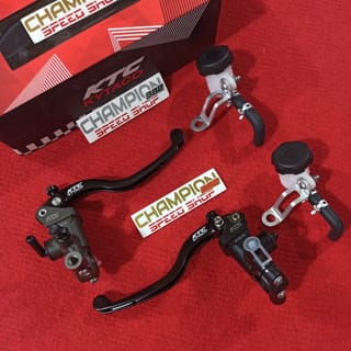 Master Brake Set KTC Kytaco EVO ANB2 Universal NMAX ADV 150 PCX 150 XMAX, etc. Information: - 100% KTC Kytaco Original - Made in Taiwan - Radial brake master with piston diameter of 14mm - Improve braking performance more optimally - Brake feeling is more lively and softer - Using a hardened anodized dyeing technique that has the advantage of protecting the outer surface from corrosion and keeping it somewhat less abrasion during impact ⠀ - Has a sealed coating on the inner wall surface of the brake master, to reduce the friction coefficient so that the rubber seal master brake has a longer life and can work more optimally in pumping the brakes - Equipped with adjustable pivot to adjust the responsive level of the brake when the handle is pressed⠀ - Price for 2pcs master brake - BRAKE SWITCH NOT INCLUDED - Brake master body color options : Black / Grey * Please inquire in advance about the stock of the goods before ordering